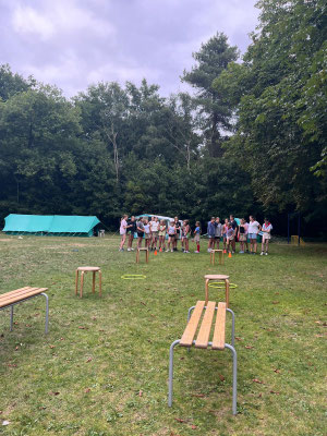 De Tippers en Tiptiens konden meteen aan de slag met opzetten van hun tenten, en ook de Kwiks begonnen met hun bedjes te installeren. De Aspi’s waren al eerder vertrokken op voorkamp, dus voor hen ging het plezier gewoon verder.