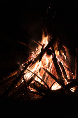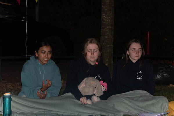 De avond begon met de bonte avond. We zagen mooie dansjes en toneelstukjes waar de leden tijdens het kamp aan hebben gewerkt. Nadat we van de optredens hadden genoten, verzamelden we rond het kampvuur waar we samen liedjes zongen.