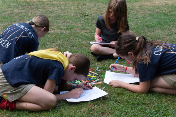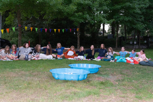 Met de hele Chiro hielden we een heus waterballonnengevecht en gleden we van onze zelfgemaakte glijbaan. ’s Avonds was het tijd voor de traditionele zangstonde en zongen we met z’n allen de mooiste Chiroliedjes.